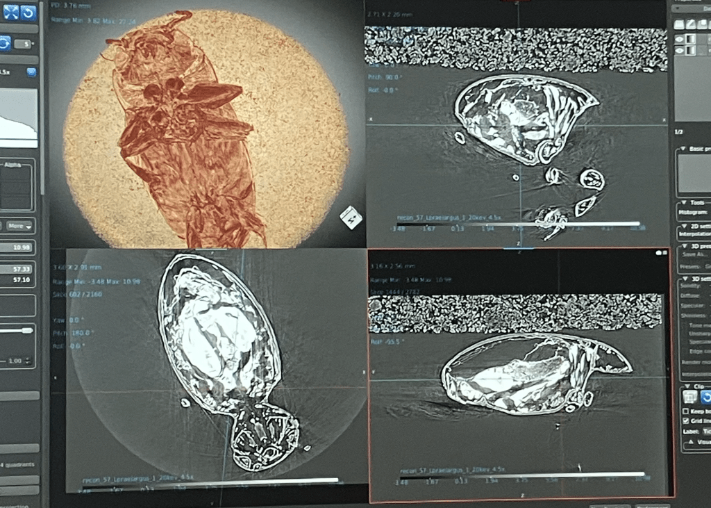 In late June, members of our team and the Quantitative Morphology Group travelled to Melbourne to visit the Australian Synchrotron. There, we used their high-power micro-Computed Tomography (CT) beamline for a continuous 50-hour period to capture the internal and external morphology of microscopic beetles.